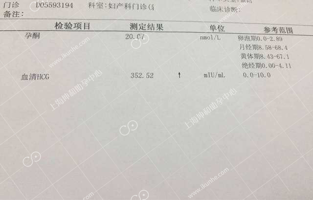 终于到了移植的那天,我们选择移植1正常男胚胎;7月4日验孕,HCG=352.52,成功怀孕啦!
